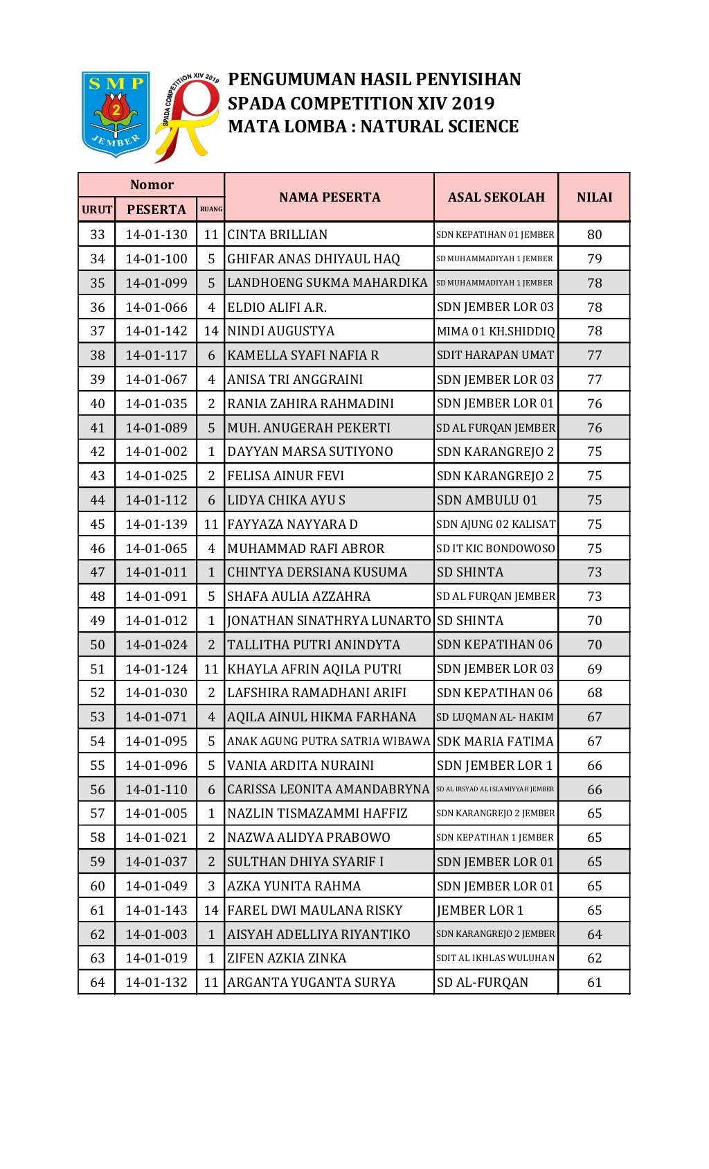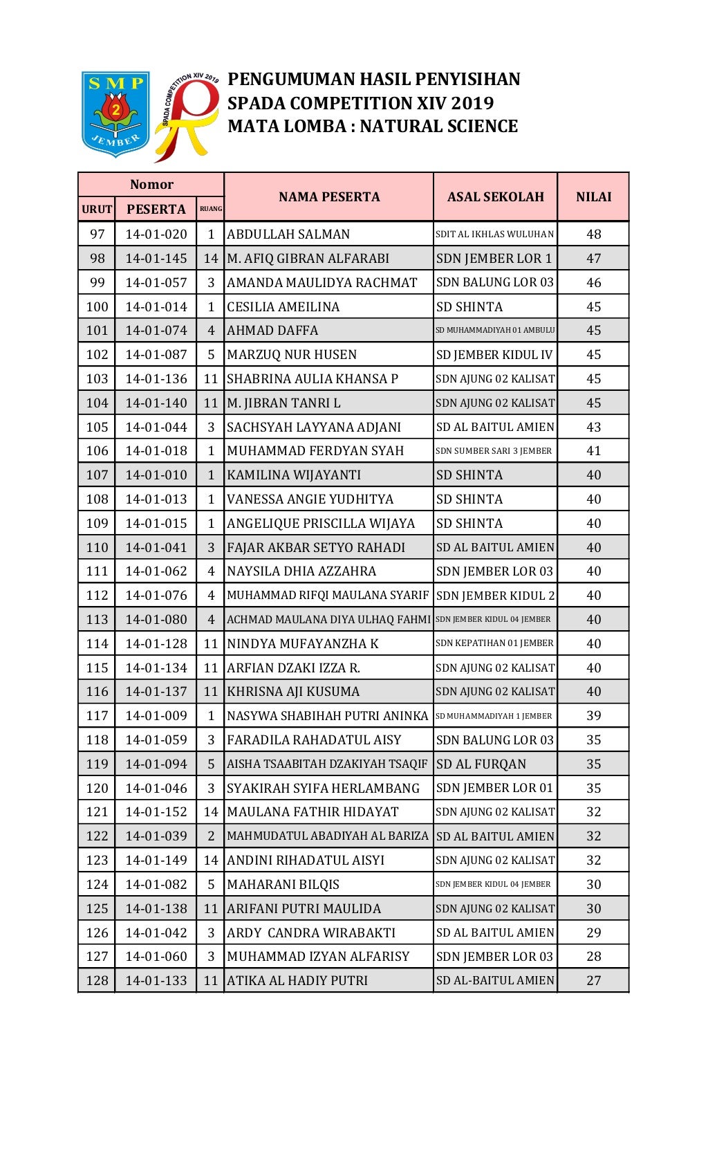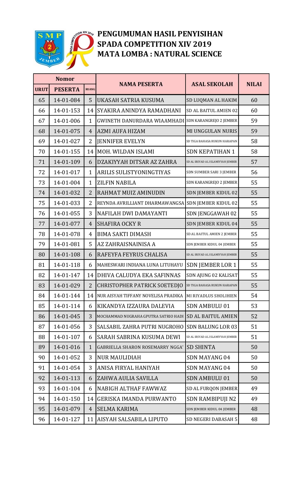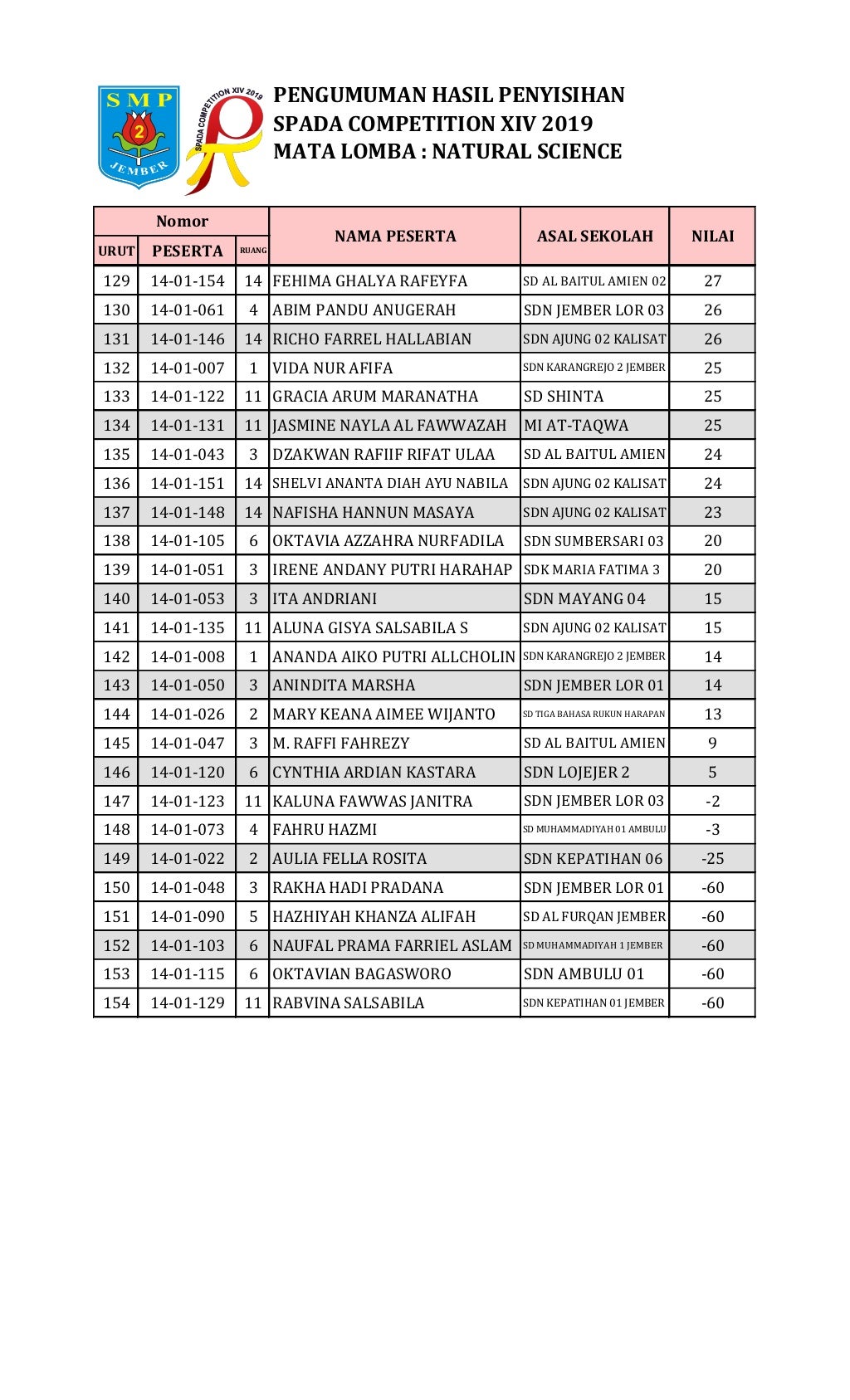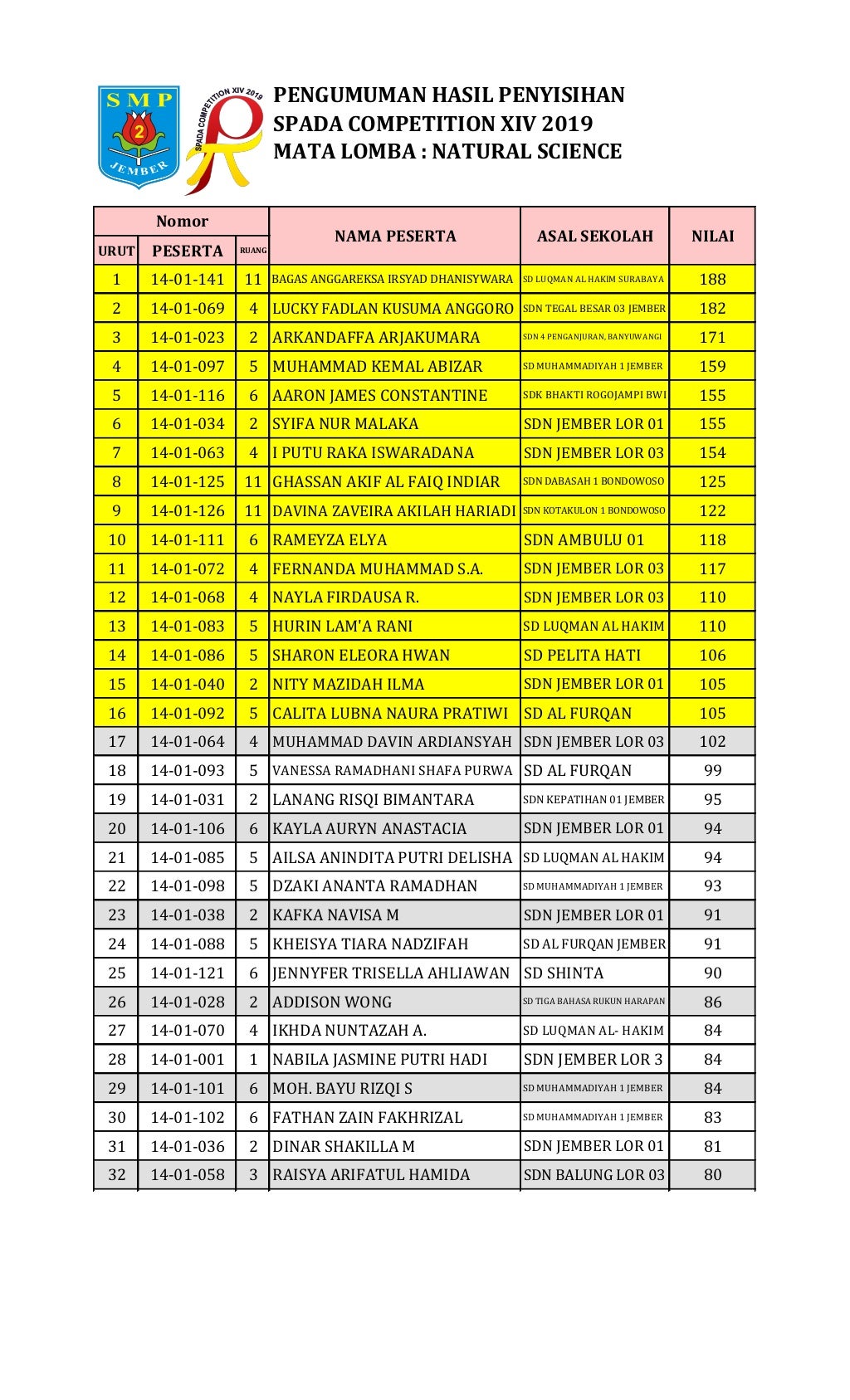 Hasil Penyisihan Natural Science