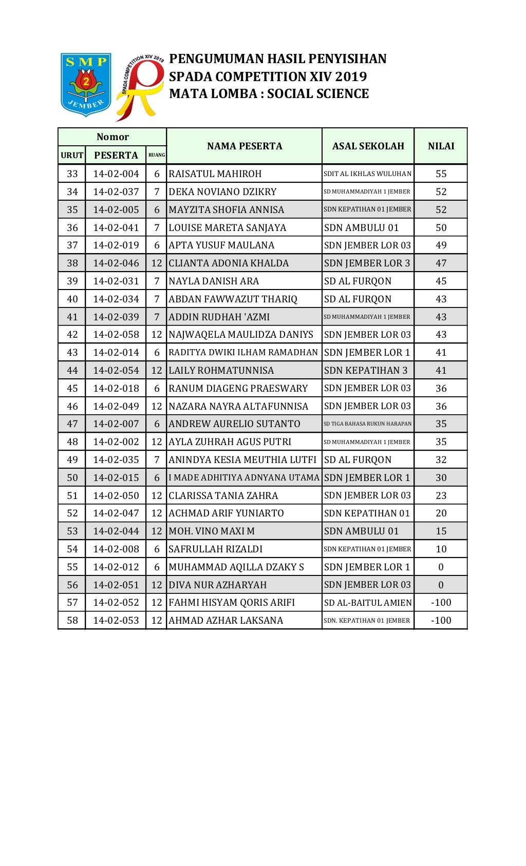 Hasil Penyisihan Social Science